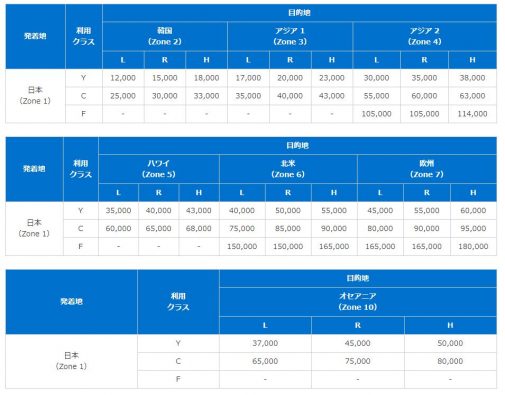 トップシーズンが重なっていたので、このマイル数になりましたが、通常は、日本からアメリカに行くフライトを予約する時に必要なマイル数は