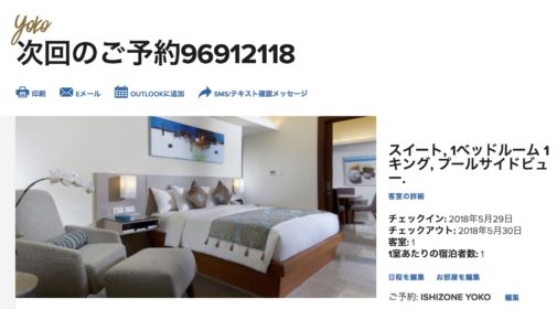 その代わり、SPGでは連泊もOK、誰かと一緒に2部屋予約したら、その分も加算されるので、4人家族で2部屋に、のんびり宿泊したい場合などは、SPGのプラチナチャレンジの方が楽なのかな、とも思います。
