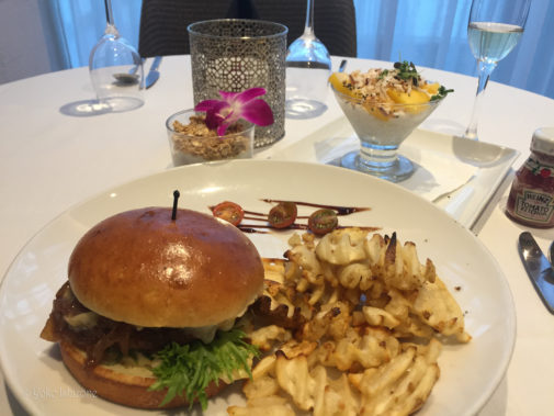 時間は、たっぷりあるので、お腹がすいてきたら、テーブル席に座って、メニューの中からハンバーガーとデザートをオーダー