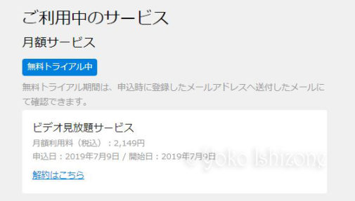 ご利用中のサービス欄の「ビデオ見放題サービス」欄に表示されている「解約はこちら」をクリックします。