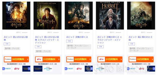 実際に登録してみたところ、観たかった映画「ホビットの冒険」は無料ではなくて有料でした。