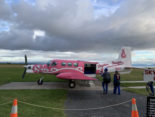 ニュージーランドに来る前に、息子と「スカイダイビングやりたいねー」と話してたとこだったので、ジャストタイミングで、わたしだけ体験してきました