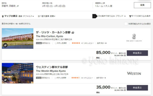 とりあえずポイントが35000以上あれば、ほかのホテルも予約することができますからね。