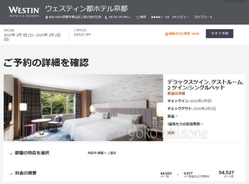 また、空きがなくなってしまうと困るので、待ちきれずに、ポイントを購入してウェスティン都ホテル京都を予約しました。
