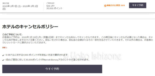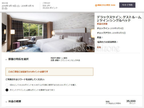 そして、実際に宿泊する15日前までに35000ポイントを貯めるか、足りなければポイントを購入すれば、ポイントでホテルに宿泊することができるはず。