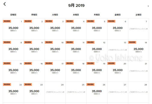 上のカレンダーだと宿泊できない日は27日だけですが、ポイントで泊まれる下のカレンダーを見ると、ほかにも満室になっている日があります。